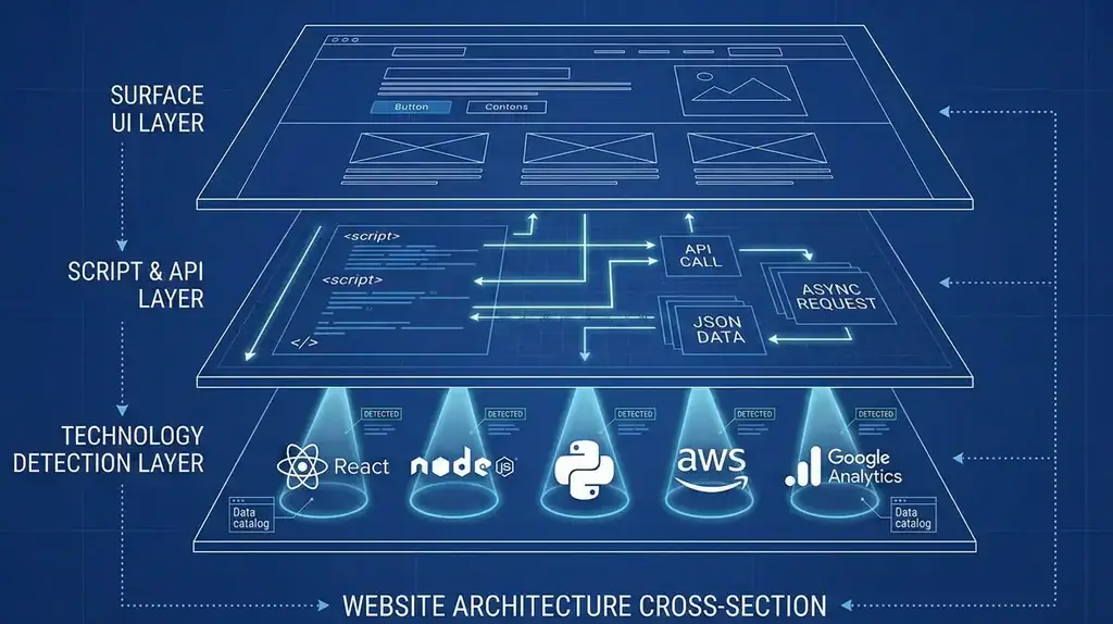 Bright Data’s Scraping Browser and Web Unlocker API allow you to crawl prospect websites directly and detect technologies through multiple signals: script tags in the page source, network requests to third-party services, meta tags, and even references in page content. This is essentially building your own BuiltWith or Wappalyzer-style detection, but with complete control over what you’re looking for and guaranteed freshness.