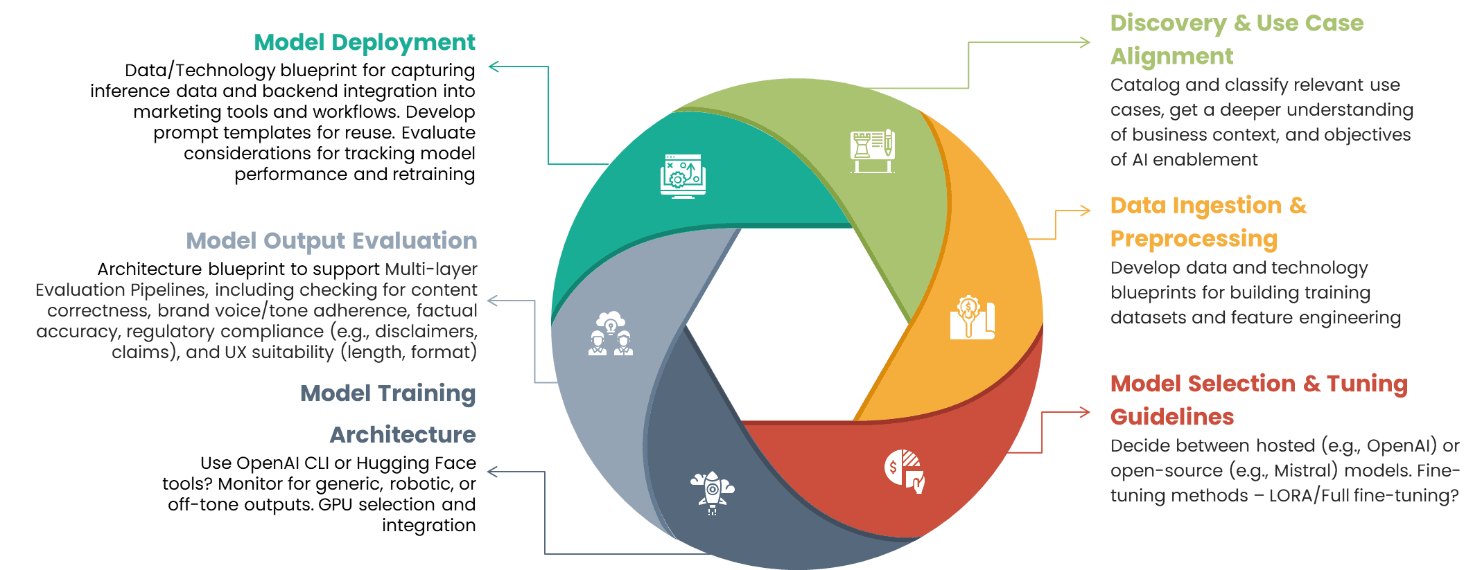 While this process is tailored to brand voice generation, the underlying steps — especially those around model selection, training, and deployment — are widely applicable across other marketing AI use cases like personalized product descriptions, campaign ideation, or chatbot training. Each step can be adapted to your organizational context, taking into account your team’s technical maturity, governance standards, available data, and marketing goals.