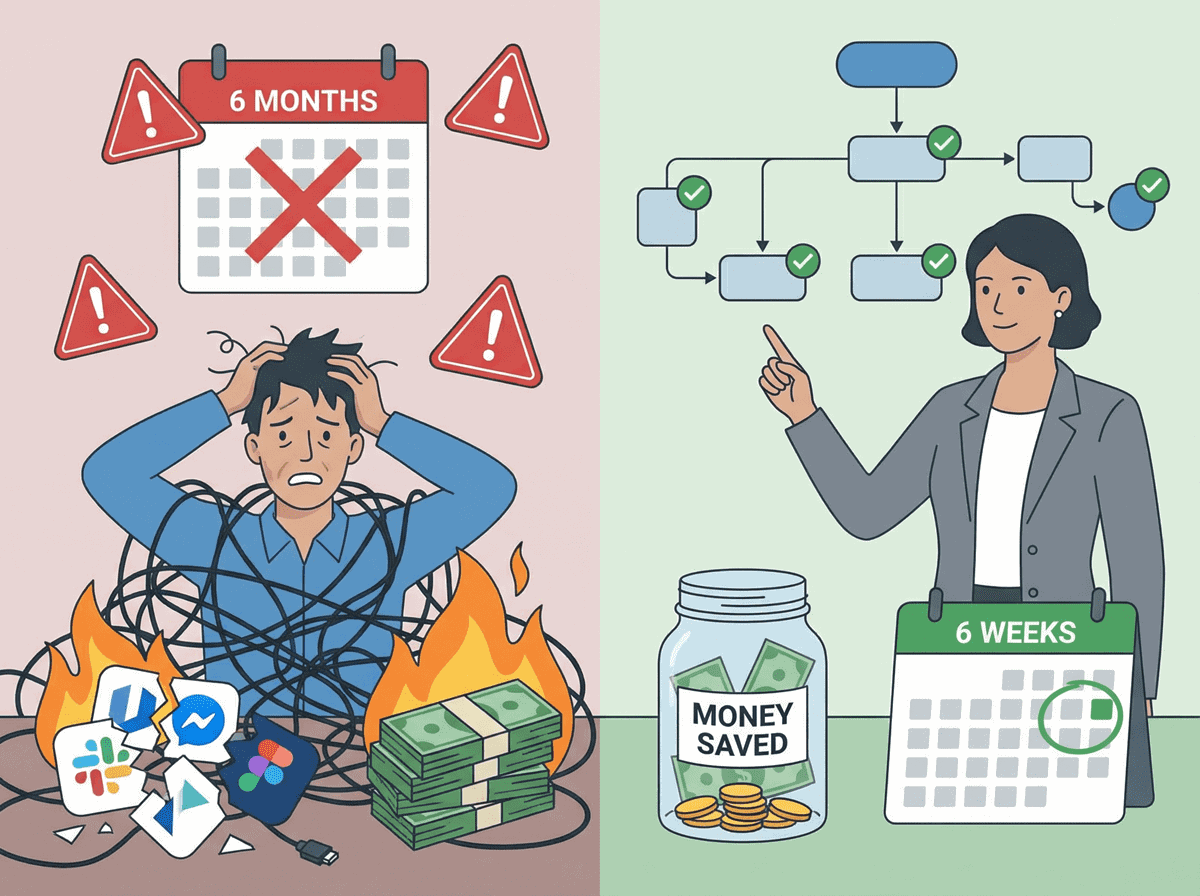 - Realistic timelines — 4-8 weeks per capability, not 6-month “transformation projects”